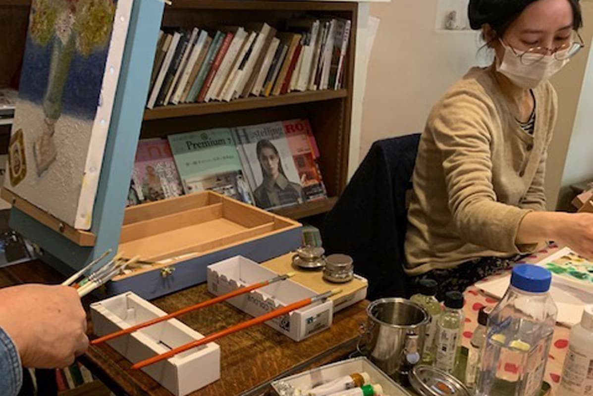 最初は鉛筆、そこからアクリル画、水彩画、油画と、どの技法でも自分の好きな描き方で好きなモチーフを描くことができます。講師は「倉敷鳥瞰絵図」で有名な岡本直樹先生。月2回 ¥6,000-/月